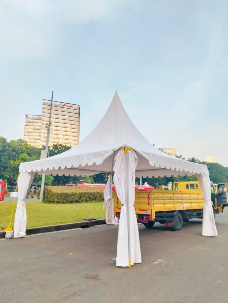 Kami siap kirim tenda dalam kondisi bersih dan terawat, ukuran dan warna bisa disesuaikan dengan kebutuhan anda. proses pemesanan mudah, penggiriman tepat waktu, dan tim kami siap bantu penataan di lokasi acara.
